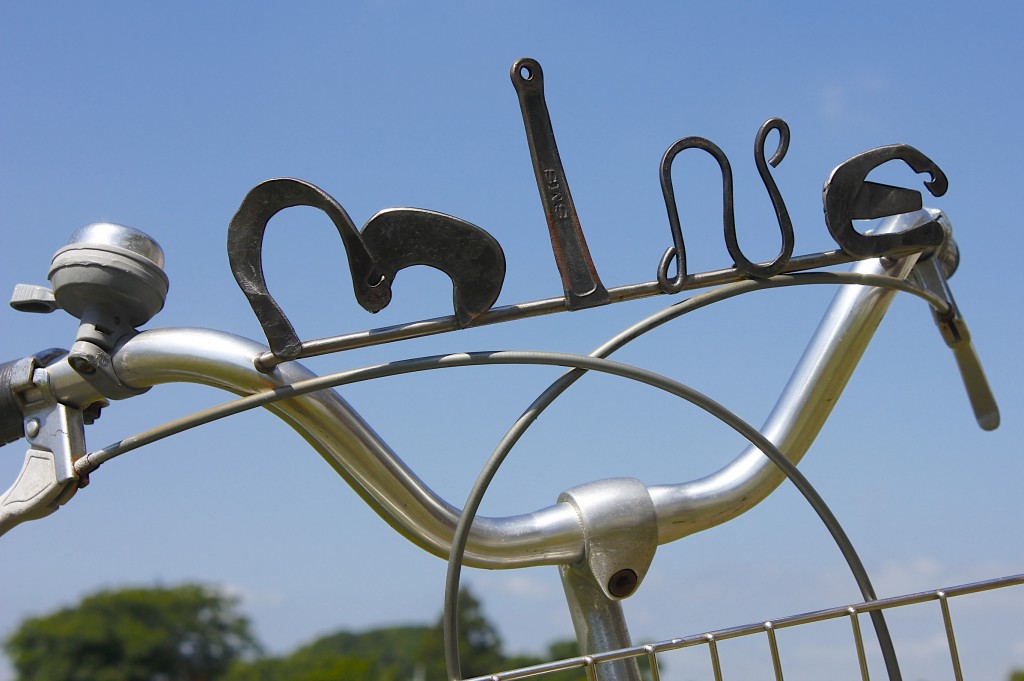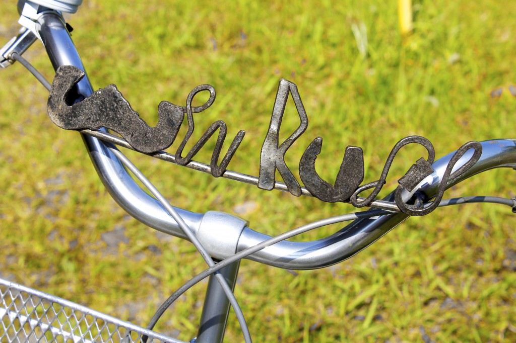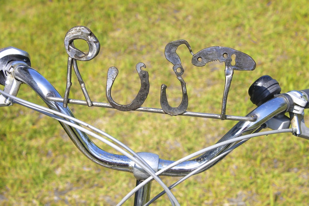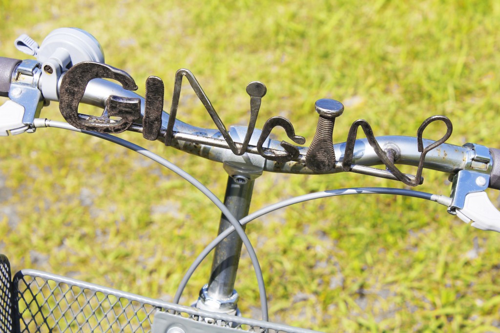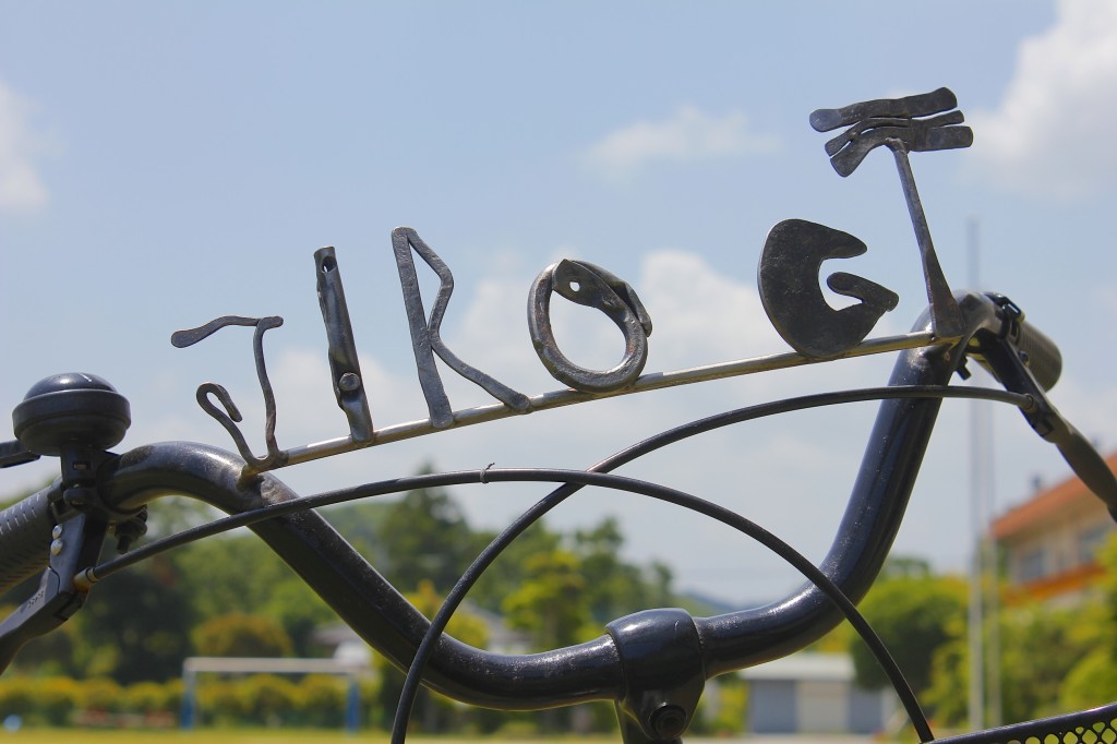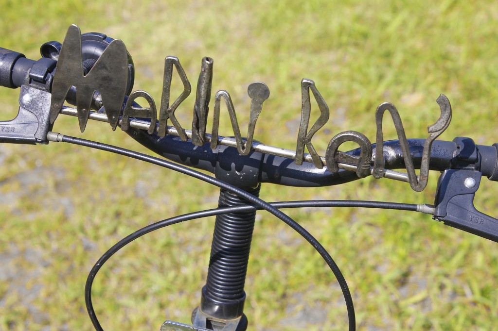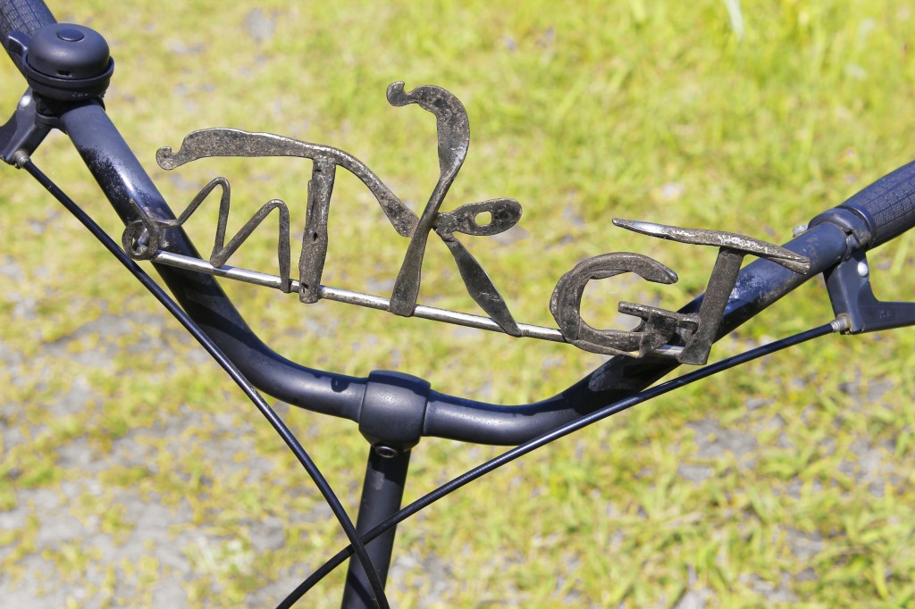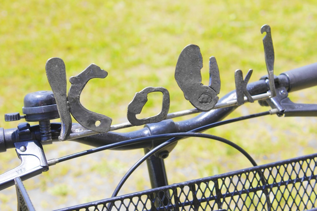 命名された自転車の名前は、市原市の鉄廃材をリメイクして作った鉄文字となり、ハンドルに取り付けられた。