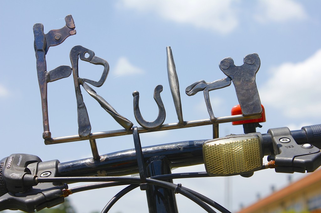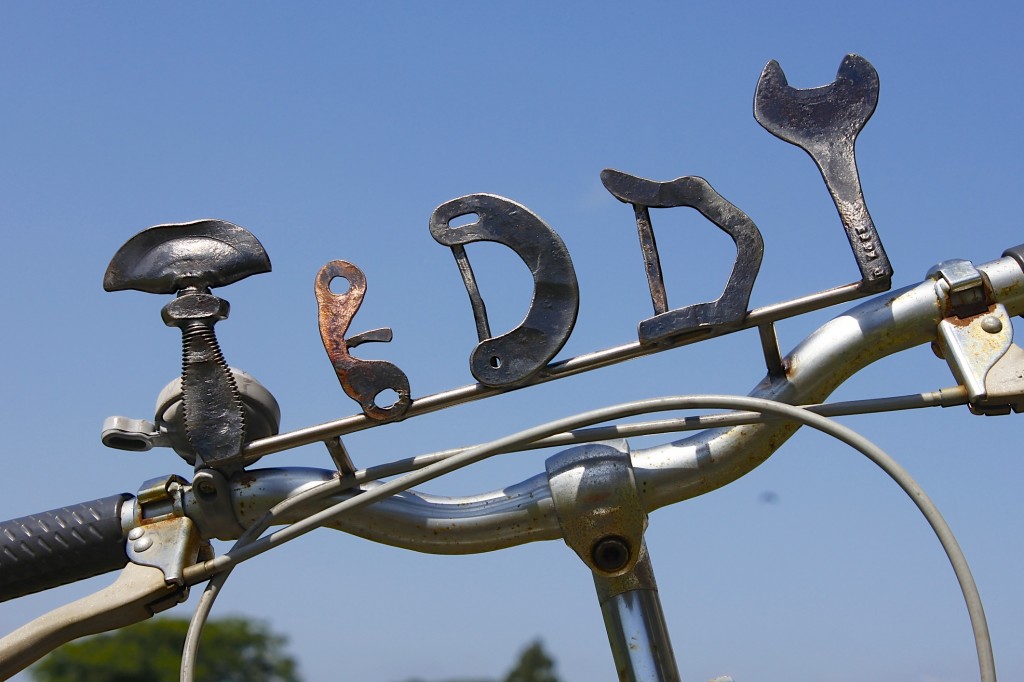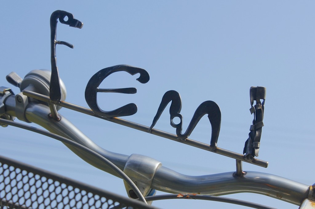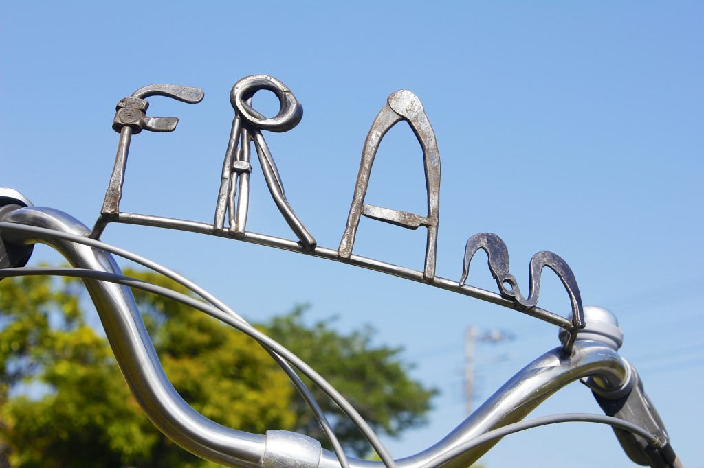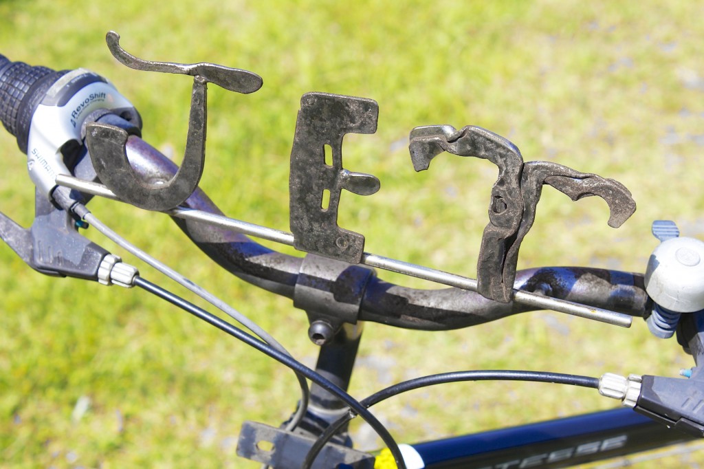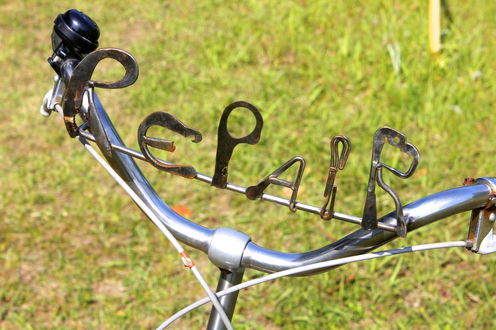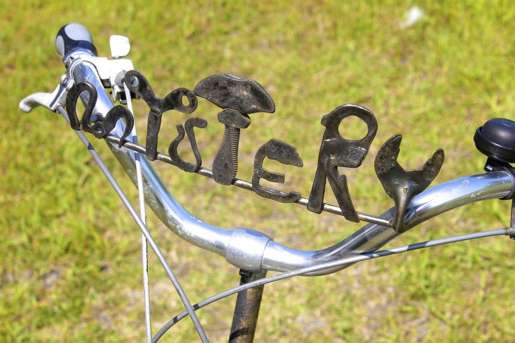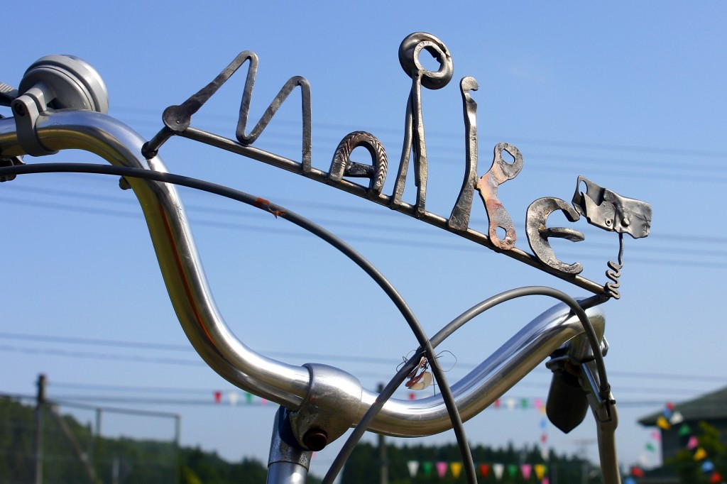 命名された自転車の名前は、市原市の鉄廃材をリメイクして作った鉄文字となり、ハンドルに取り付けられた。